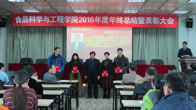会上,副院长李勇军同志首先宣读了beat365中国唯一官网关于表彰2016年度先进单位和个人的通报,副院长张铁华同志宣读了关于2016年食品科技青年论坛获奖情况的通报,院长助理兼食品科学与工程系主任周亚军同志宣读了关于2016年本科生学术年会获奖情况的通报;会上对一年来表现突出的单位、教师和学生进行了表彰。