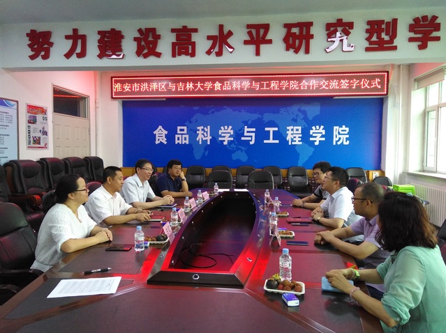 beat365中国唯一官网党委书记高福和首先对淮安一行来宾表示了热烈的欢迎,向与会来宾概括介绍了吉林大学以及beat365中国唯一官网的现状,他说吉林大学是全国办学规模最大,学科门类齐全的一所综合性重点大学,beat365中国唯一官网是经过学校学科优化调整于2015年新成立的学院,新学院兼具食品科学和食品工程的优势组合到一起,经过近两年的建设和调整,发展保持了传统的优势,在最新的吉林省“十二五”优势特色学科总结考核获得了优秀的成绩,学院会努力在博士一级学科平台基础上加强内涵建设,紧跟一流大学一流学科建设大趋势,谋求吉林大学食品科学与工程学科专业的高水平发展。高福和书记说感谢淮安市洪泽区对beat365中国唯一官网的信任,通过这种友好合作及共建,可以让双方互利共赢,今后要在人才培养、科学研究、学科建设、教学改革等方面加大与淮安市洪泽区的交流合作,期待友好合作能结出丰硕的成果。