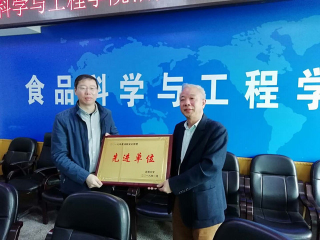 最后检查组代表学校与学院签订《2018年度吉林大学综合治理承包责任书》,并为学院颁发了吉林大学2017年度消防安全管理先进单位奖牌和先进个人证书。