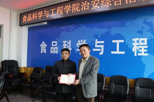 随后,农学部学部长、西区综合办公室主任杨振明对学院2017年综合治理工作进行了点评,他指出,2017年食品科学与工程学院综合治理工作成绩显著,学院领导十分重视综治工作,各项工作开展的非常到位。2018年要从全员提升安全意识,加强政治安全、治安交通管控,提高学生安全意识等方面提出了具体要求。