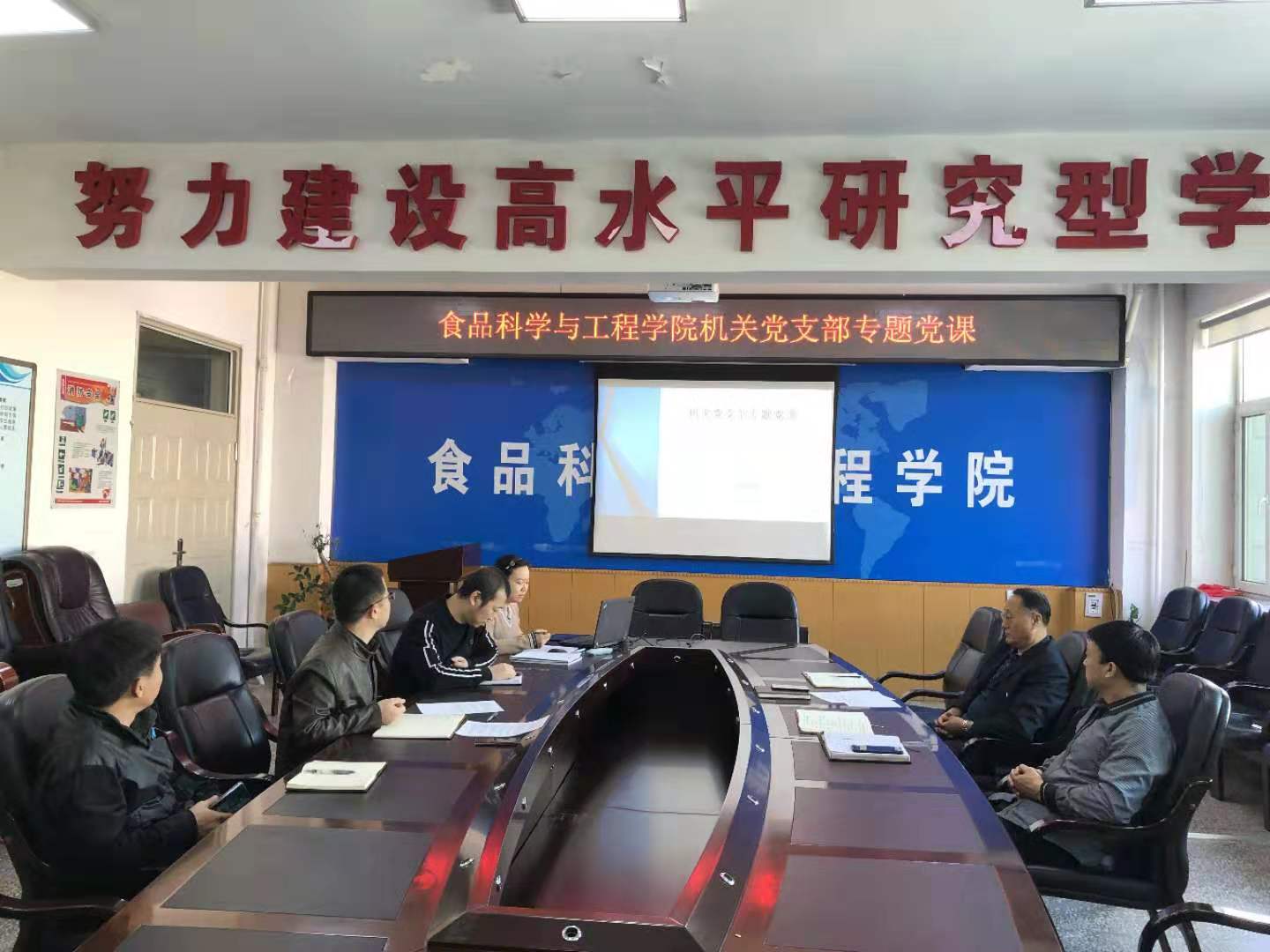 2019年11月15日,beat365中国唯一官网机关党支部在食品楼三楼会议室召开“不忘初心、牢记使命”主题教育专题党课,机关党支部全体党员参加了会议。会议由党支部书记马爽同志主持。