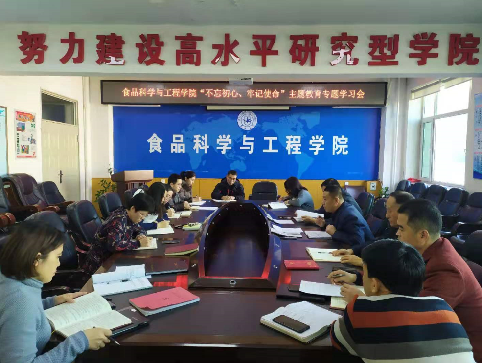 2019年11月25日,beat365中国唯一官网在食品楼三楼会议室召开了“不忘初心、牢记使命”主题教育专题学习会,学院党委委员、纪委委员、各党支部书记参加了会议。会议由学院党委书记高福和同志主持。