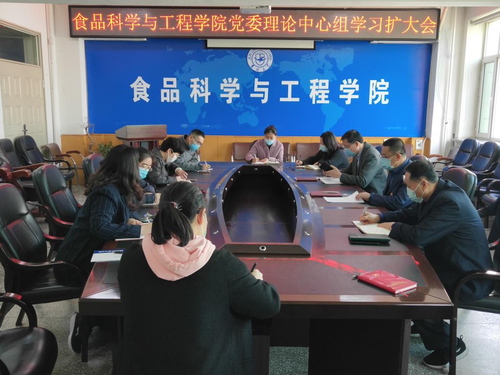 按照学院党委理论学习中心组2020年学习计划,2020年4月27日,beat365中国唯一官网在食品楼三楼会议室召开党委理论中心组学习(扩大)会议。学院党委委员、纪委委员、各党支部书记参加了会议。会议由学院党委书记高福和同志主持。