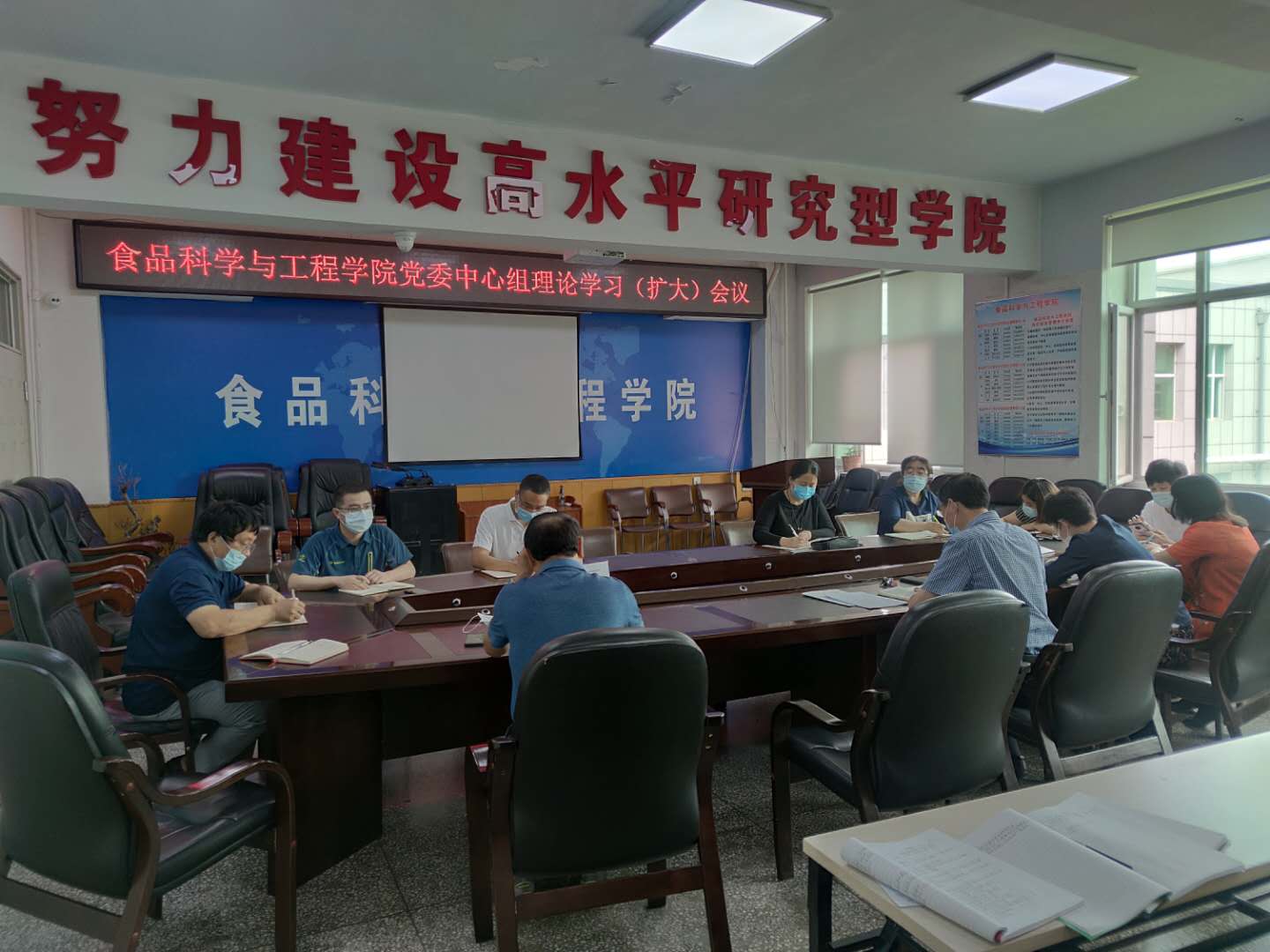 按照学院党委理论学习中心组2020年学习计划,2020年6月15日,beat365中国唯一官网在食品楼三楼会议室召开党委理论中心组学习(扩大)会议。学院党委委员、纪委委员、各党支部书记参加了会议。会议由学院院长张铁华同志主持。