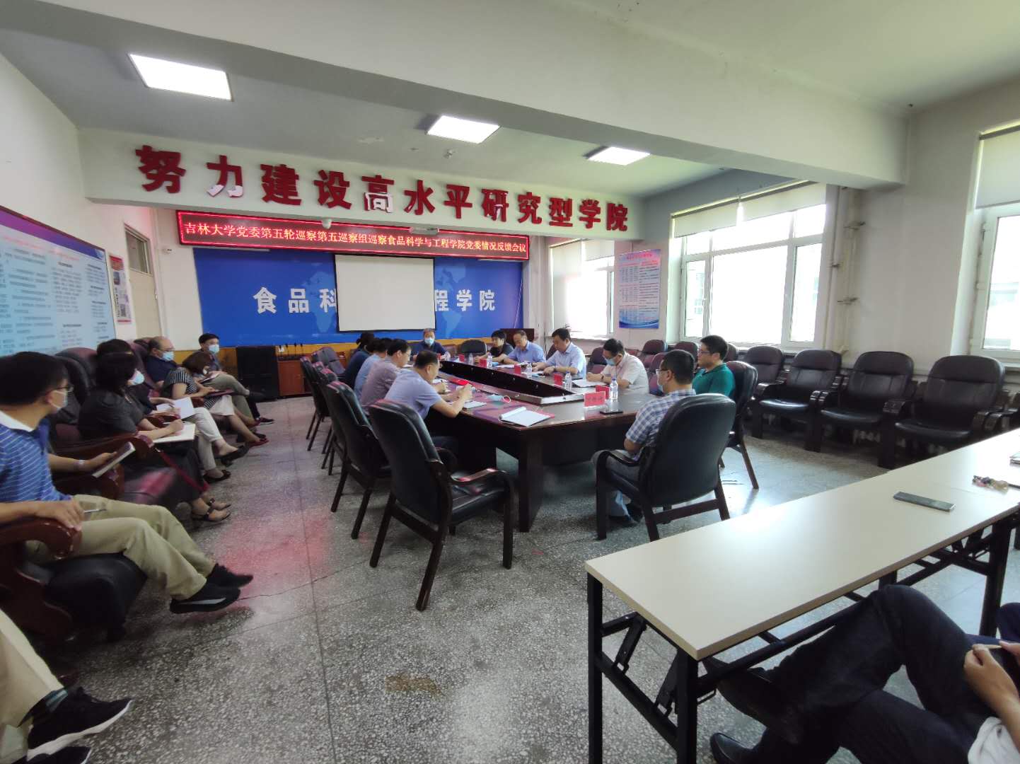 根据学校党委关于巡察工作的部署,2020年6月28日下午,学校党委第五巡察组向beat365中国唯一官网党委反馈巡察情况。学校巡察工作领导小组成员刘晓昌、党委第五巡察组组长李佰志及全体成员、学院领导班子全体成员,近三年退出管理岗位的班子成员,党委委员、纪委委员、基层监察员,学术委员会主任、学位评定委员会主任、教学委员会主任,支部书记、系(部、室、所、中心)主任,教职工代表等参加了会议。会议由beat365中国唯一官网党委书记高福和主持。