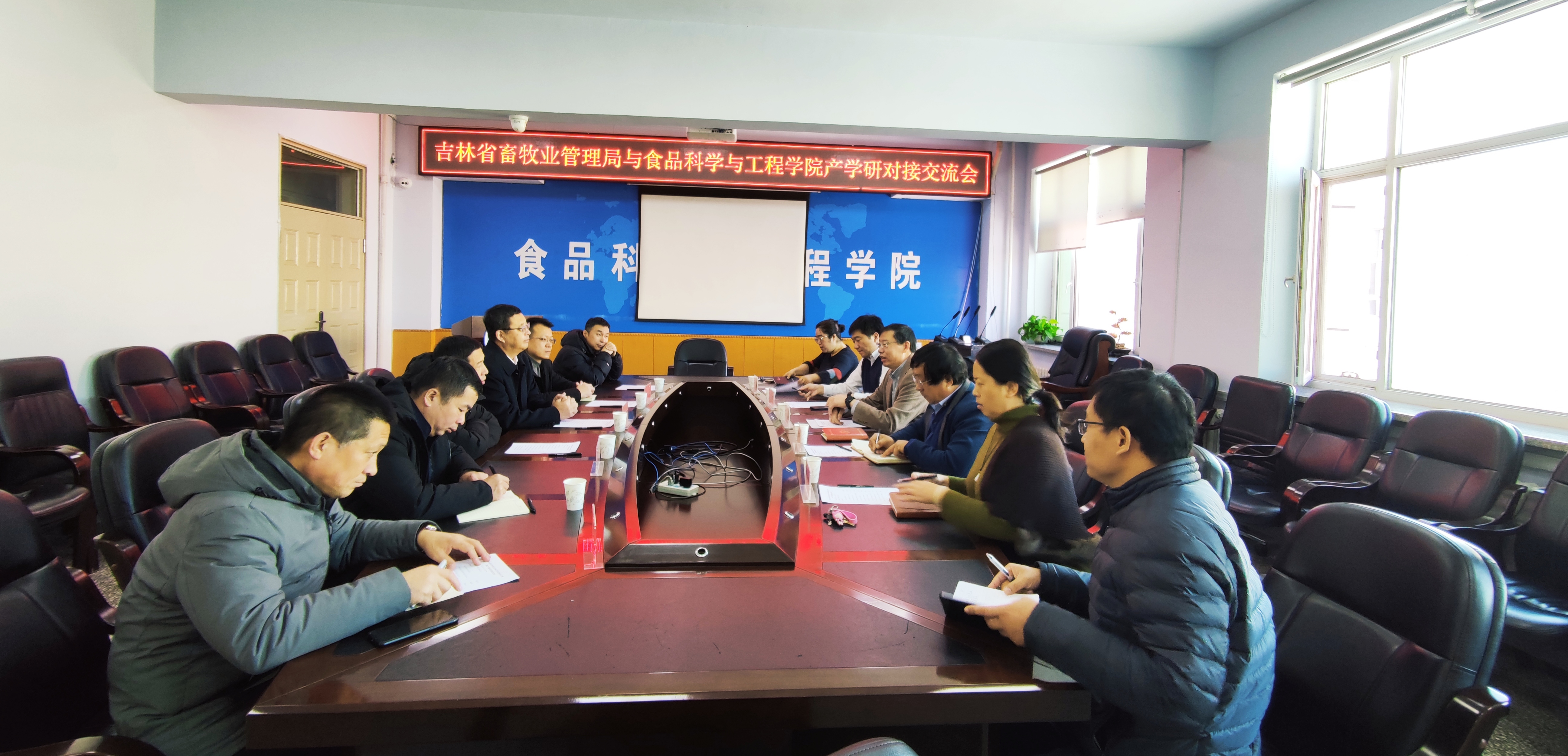 2021年11月25日,吉林省畜牧业管理局与beat365中国唯一官网产学研对接交流会在食品楼三楼会议室召开。吉林省畜牧业管理局局长张国华、畜产品加工处处长陈本能等一行6人,吉林大学西区科技办公室主任张嘉桐、beat365中国唯一官网院长张铁华教授、副院长周亚军教授、系(教研室)主任参加了会议。会议由院长张铁华主持。