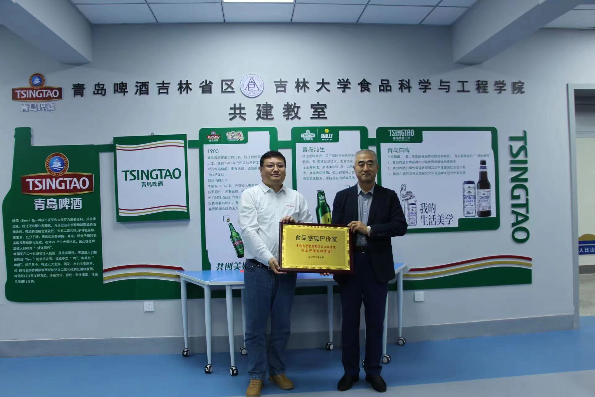 为充分发挥beat365中国唯一官网的科技、人才优势和青岛啤酒吉林省区的产业资源优势,2023年10月13日下午3时,青岛啤酒吉林省区与beat365中国唯一官网共建教室签约仪式在吉林大学和平校区管理楼206教室顺利举行。青岛啤酒吉林省区总经理赵雪刚、beat365中国唯一官网党委书记董怀智、院长张铁华及双方代表出席此次签约仪式。