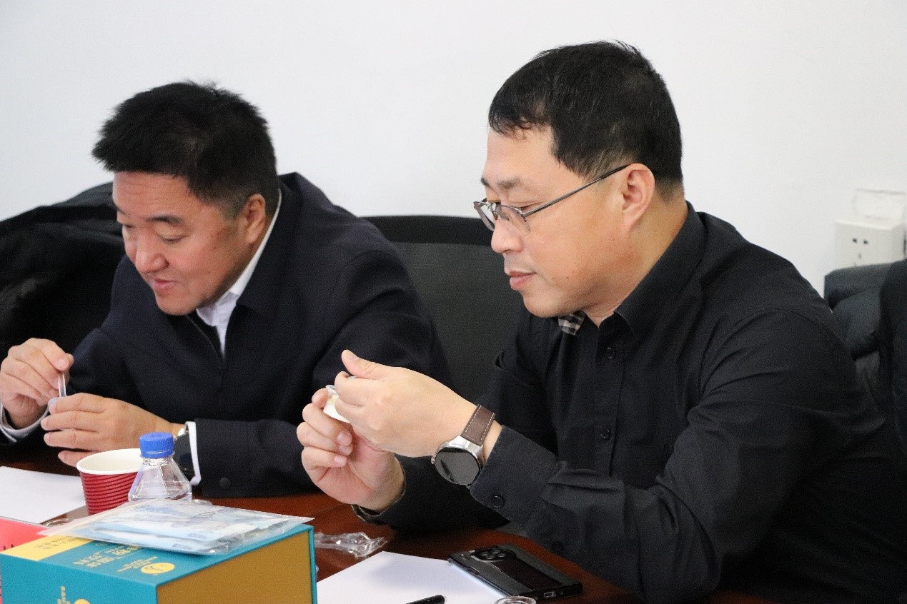 随后,张铁华重点介绍了其团队在人参乳制品研发领域的创新成果。他表示,人参作为传统中药材,具有延缓衰老、抗癌等多重功效,将其融入乳制品开发,不仅丰富了乳制品的营养价值,还赋予其更多健康功能。这种结合既保留了人参的滋补特性,又契合现代消费者对食品便捷性和口感的高要求。他还特别邀请穆可桢一行现场品鉴团队研发的人参乳制品,并表示未来将继续优化产品结构,深度挖掘功能乳制品的研发潜力,致力于推动该领域取得更多创新突破。