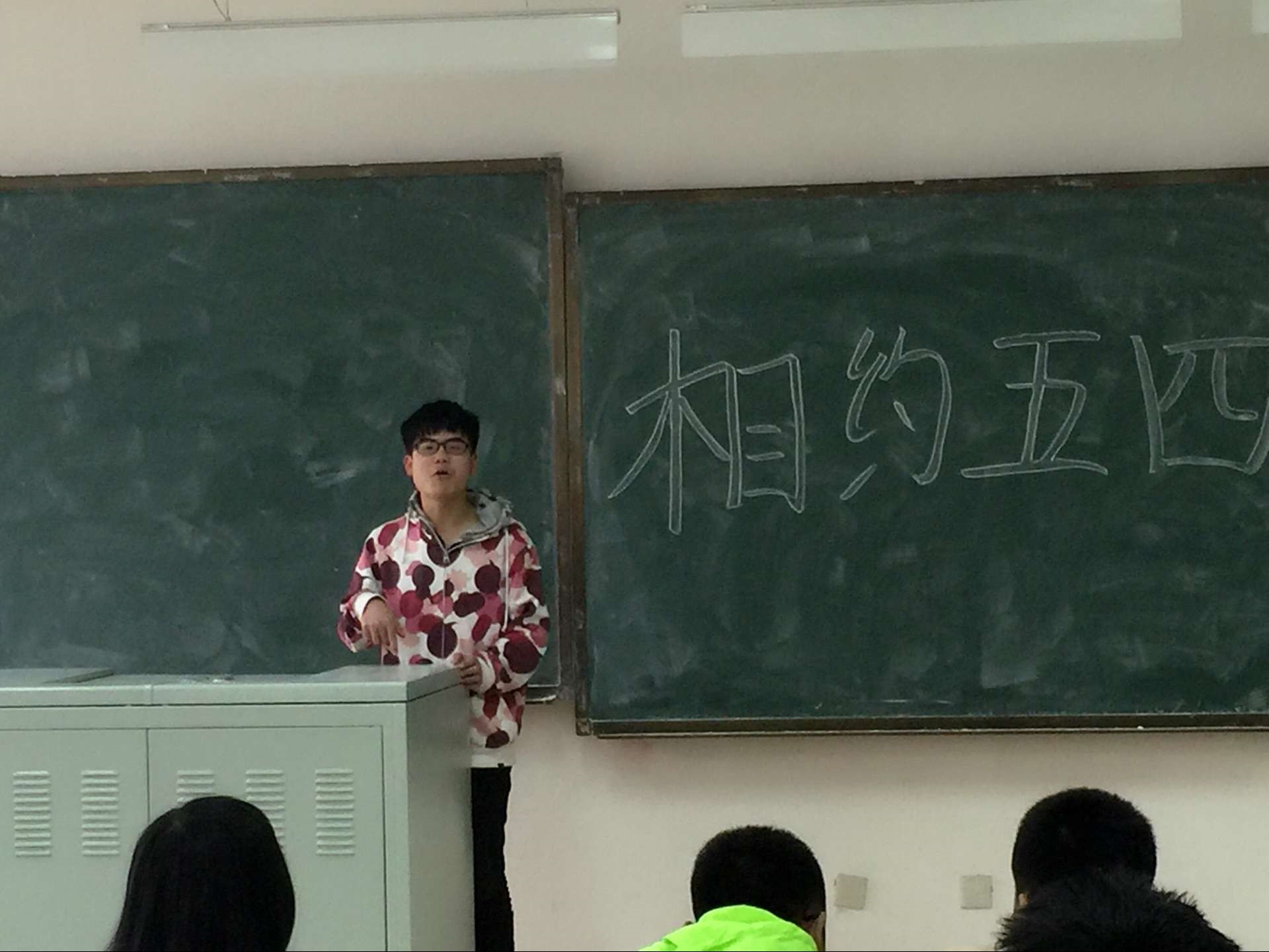 | 为迎接五四青年节,发扬五四精神,展现当代大学生的良好风貌,践行青年义务,2016年5月4日中午,beat365中国唯一官网2015级食科2班于吉林大学前卫南区李四光楼开展了“相约五四,青春同行”主题团日活动。 活动伊始,团支书首先介绍了五四运动的相关背景,播放了五四运动的相关视频,摘读了习近平总书记针对青年讲话的重点内容,并对此进行了讲解。随后,班委组织同学们以“如何发扬五四精神”为议题开展小组讨论。同学们表示青年学生发扬五四精神,最重要的是要将自己的发展与祖国的发展联系起来,树立坚定的理想信念以及正确的社会主义荣辱观,勤于学习、善于创造、甘于奉献,为中华民族的伟大复兴而努力奋斗。 此次团日活动充分调动了广大学生的积极性,展现了当代大学生“继往开来、努力进取、创新求实”的时代精神,体现了我班学生 “用实际行动弘扬五四精神”的良好精神面貌。活动结束后,同学们都纷纷表示以后无论是在学习还是生活中都时刻以“五四精神”激励自己,争取在德智体美劳等方面全面发展,充分展现时代先锋的绚丽风采。