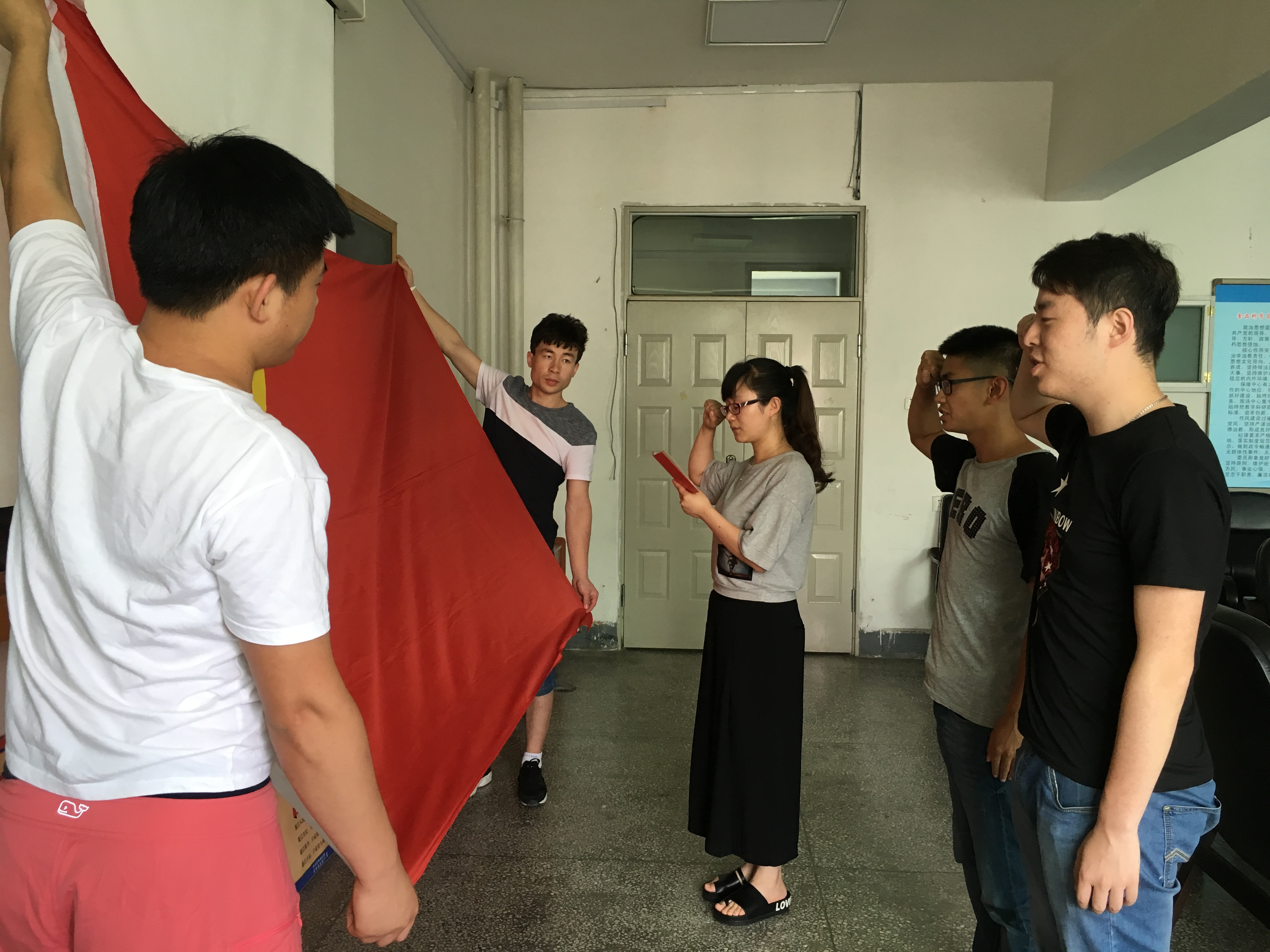 | 为庆祝中国共产党建党95周年,进一步提高党员及积极分子的党性修养,加强党员内部的相互学习交流,2016年6月30日中午,军需科技学院学生党支部在管理楼三楼会议室举办庆祝中国共产党成立95周年主题党日活动。军需科技学院学生党支部书记金鑫,支部全体党员、积极分子参加了此次会议。会议由金鑫同志主持。 首先,在鲜红的党旗下,樊新旺同志、徐航同志在领誓人金鑫同志的带领下庄严宣誓,表达了对党的忠诚,对党的坚定信念和为党的事业奋斗终身的决心。随后,金鑫同志为徐航和王超龙两名优秀共产党员颁发荣誉证书,并和在座的其他同志一起对其表示热烈的祝贺。最后,与会同志就建党九十五周年交流了自己的感悟心得,大家纷纷表示要坚定信念,对党忠诚;要爱党护党,与党融入共存;要认真完成学业,争做学习、服务型党员,让党员队伍永远充满生机、充满战斗力,不断发展、前进、壮大,为中华民族的辉煌续写新的篇章。。 此次会议旨在支部内树立党员学习标杆,加强党员内部的学习交流,共同庆祝建党95周年并通过交流感悟进一步加深对党的认识,加强党员的党性修养。