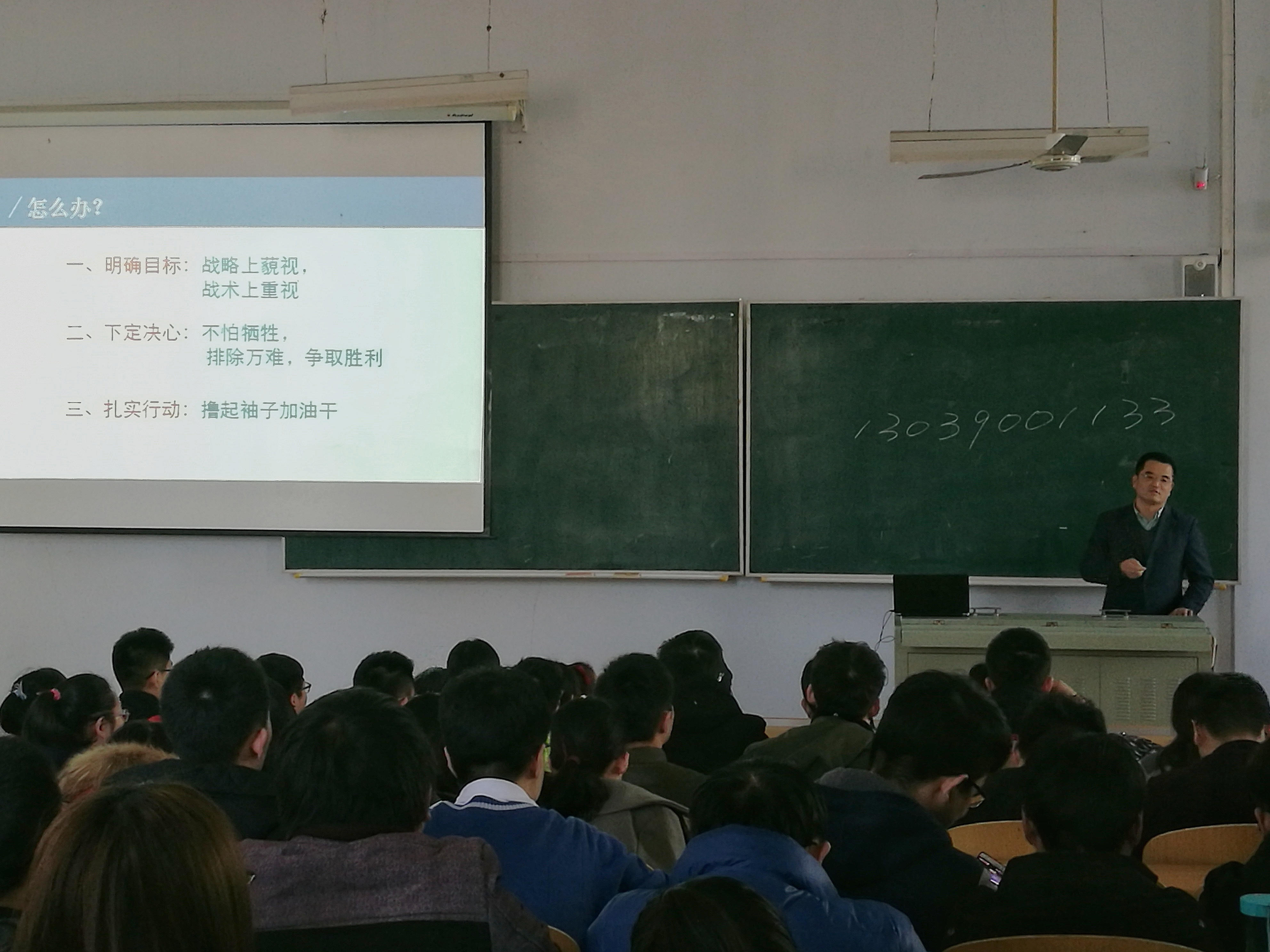 | 为总结2016年学业,敦促学院大三年级学生做好发展规划,2017年3月14日,beat365中国唯一官网于科讲100教室组织召开了2014级学生年级总结大会。学院党委副书记梅士伟、学工办主任兼团委书记王丹等出席了本次会议。 会议开始后,年级辅导员王丹老师首先运用数据统计工具,对2014级各班上一学期的综合学习情况进行了总结,对比分析了各班学业情况、挂科学生情况、英语过级情况和大家的毕业设想,提出了新学期工作思路;数据真实丰富,对与会同学的触动很大。随后,梅士伟老师作总结讲话,他肯定了同学们三年来努力学习的成果,表达了对同学们辛勤付出的赞赏。接下来,他运用PPT向大家介绍了我院2013级学生的就业、国考和深造情况,带领大家共同分享了学院优秀学子的成绩;向大家展示了食品学院毕业生可能面临的毕业选择,分析了考研、公务员考试、出国深造和就业等不同就业方向的适用性、条件要求和竞争压力,并重点针对本专业国家公务员考试和全国各省区公务员考试岗位需求作了详细说明,帮助大家明确努力方向。梅老师最后希望大家要在大三向大四转换的关键时期坚定信心,明确目标,下定决心,“撸起袖子加油干”,用实干成就青春梦想。 通过本次大会,2014级本科生的学习热情与激情被调动起来。针对2013级本科生就业现状的讲解也让同学们对自己的未来有了更加明确的规划,引发了同学们对未来发展的进一步思考。