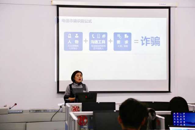 进一步加强对防范传销、电信诈骗的宣传教育,提高在校大学生远离传销、拒绝传销的能力,2017年11月8日晚,beat365中国唯一官网在食品楼三楼机房组织开展了防范传销及电信诈骗宣传教育活动。本次活动由辅导员郝慧主持,学生会成员和各年级班委同学参加了此次活动。