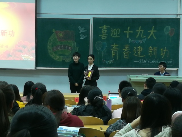 为了深入学习、宣传和贯彻党的十九大精神,号召青年团员学习习近平新时代中国特色社会主义思想,领会党的十九大报告提出的新思想、新观点、新理念、新举措,牢记时代赋予当代青年的历史使命。2017年11月22日,beat365中国唯一官网团委于科讲200教室组织开展了“喜庆十九大 青春建新功”系列主题团日活动答辩会。学工办主任王丹、团委负责人郝慧及学生会主席团成员出席了本次活动并担任评委。