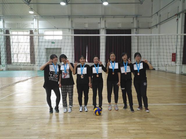 我院女子排球队由2014级马丽捷、2015级刘美彤、王欢、许雅宁、王一凡,与2016级窦纯、王枫3个年级学生组成,在之前的抽签分组中,我院与通信学院、商学院和动物医学学院分为一组。第一天进行小组赛,队员们在赛场上挥洒汗水、奋力拼搏,最终三战全胜,以小组第一的成绩出线。第二天的比赛中,我院首先和临床医学学院对战,遗憾败北。在争夺三、四名的比赛之中,我院击败对手获得了第三名的好成绩。队员们互相配合,相互鼓励,每一个传球都凝聚着智慧与团结,每一次接球都尽显他们青春的活力,整个赛场上充满呐喊、助威、喝彩、拼搏、活力。