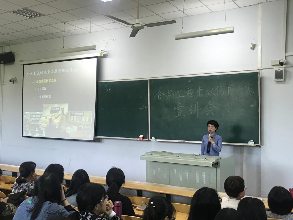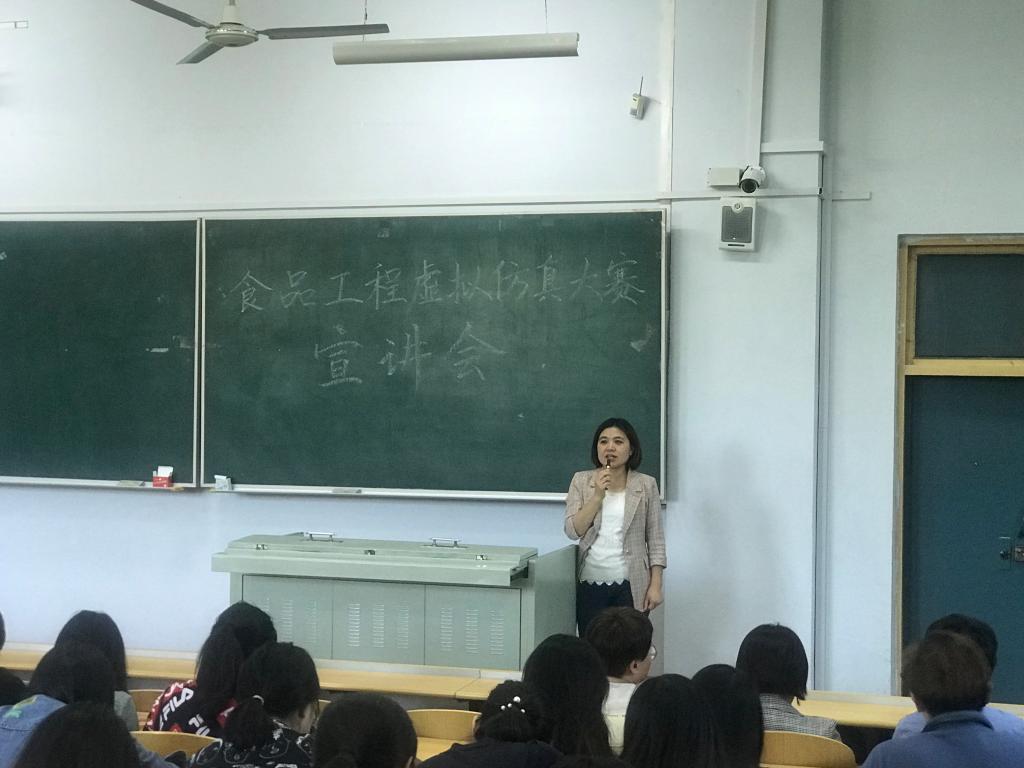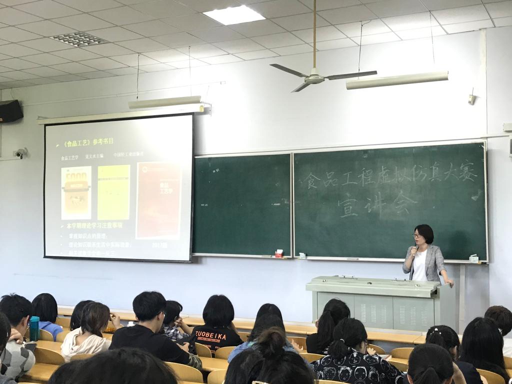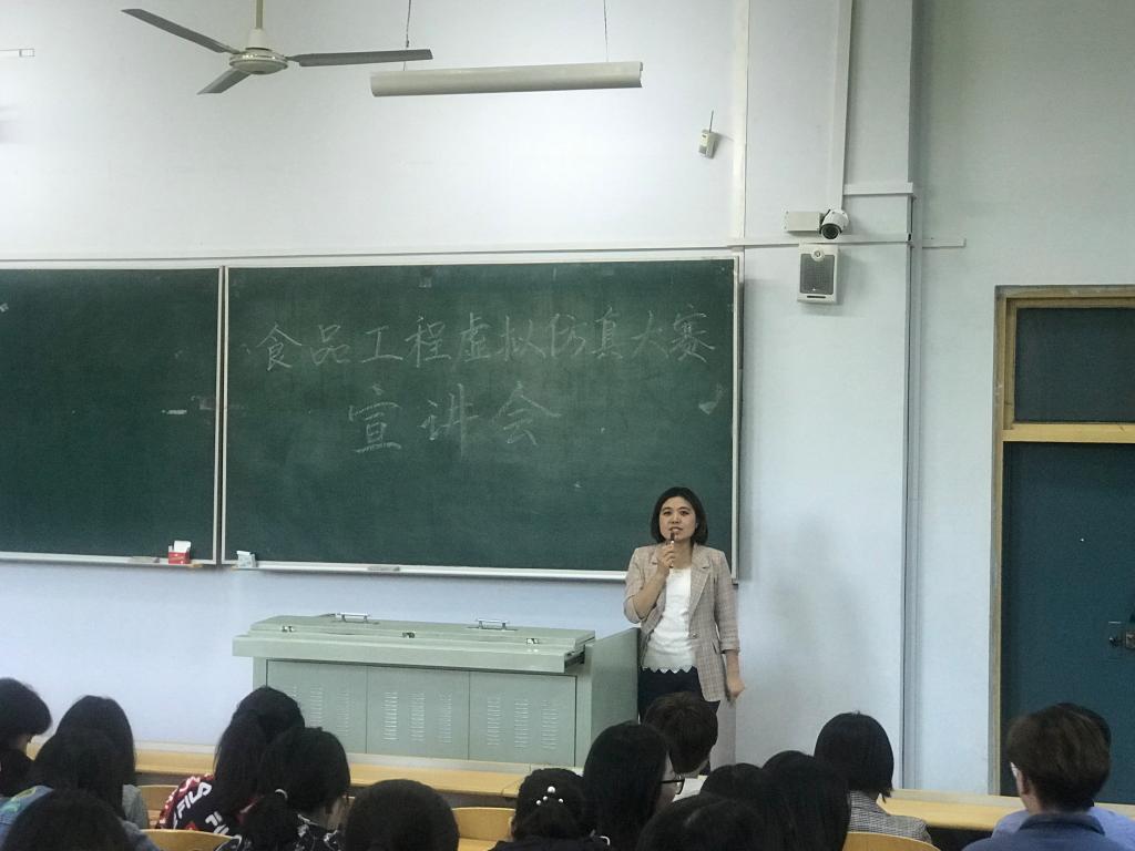 为提高同学们对全国大学生食品工程虚拟仿真大赛的认识,培养创新型高素质专业人才,日前,beat365中国唯一官网于科学讲堂200教室举办了虚拟仿真大赛宣讲会。本次宣讲由团委书记郝慧主持,带队获得2019年全国大学生虚拟仿真大赛一等奖的优秀指导教师奚春宇副教授、王笑丹副教授、王翠娜老师和张燕老师,以及获奖学生代表李江飞、李继红同学,与学院2017级全体本科生一起参加宣讲会。