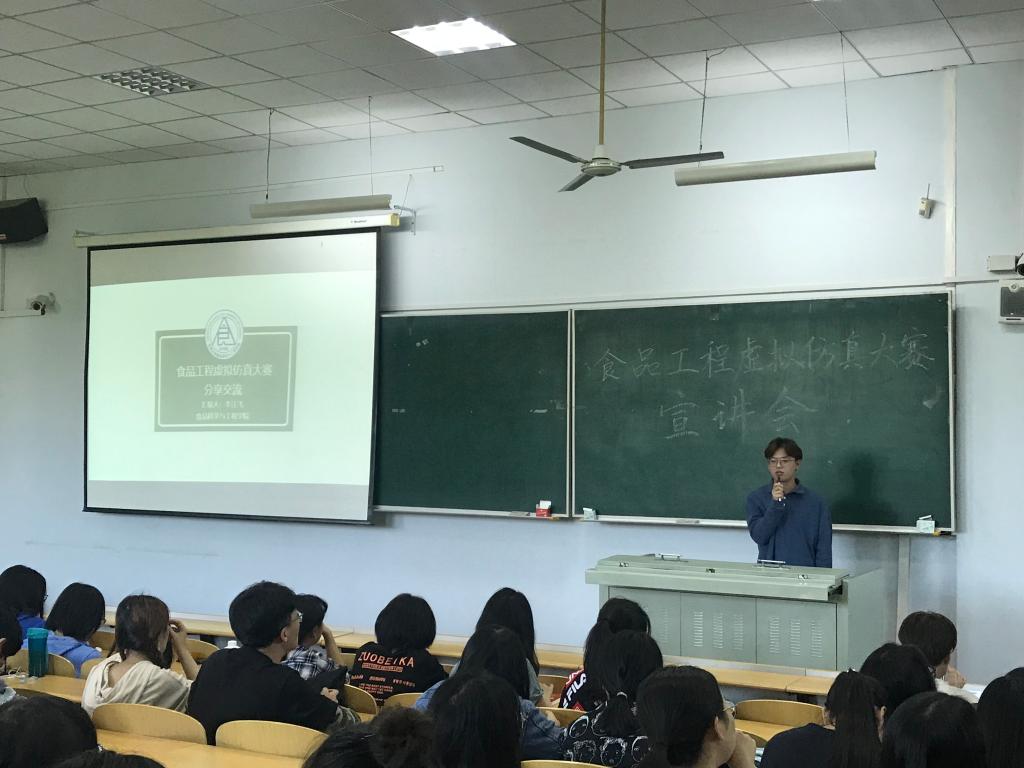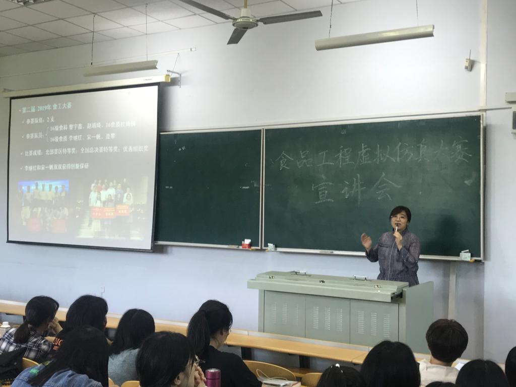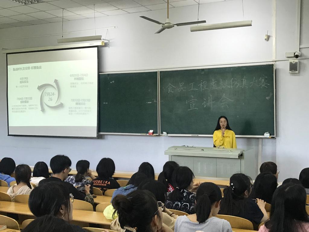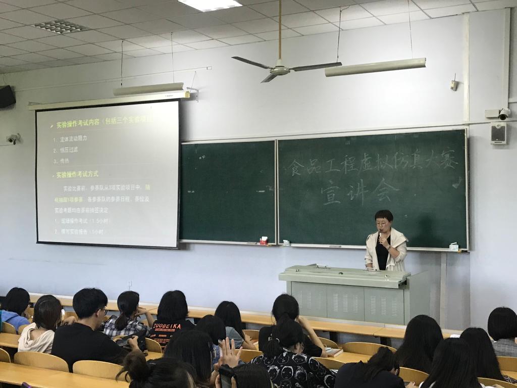 为提高同学们对全国大学生食品工程虚拟仿真大赛的认识,培养创新型高素质专业人才,日前,beat365中国唯一官网于科学讲堂200教室举办了虚拟仿真大赛宣讲会。本次宣讲由团委书记郝慧主持,带队获得2019年全国大学生虚拟仿真大赛一等奖的优秀指导教师奚春宇副教授、王笑丹副教授、王翠娜老师和张燕老师,以及获奖学生代表李江飞、李继红同学,与学院2017级全体本科生一起参加宣讲会。