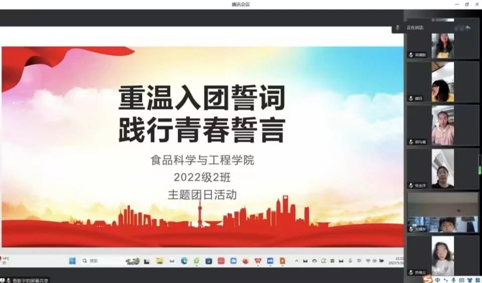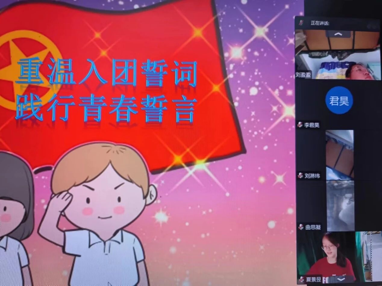 2022级1班团支部于5月15日举办了"青春心向党 重温入团誓词,践行青春诺言”团日活动,通过线上会议进行。