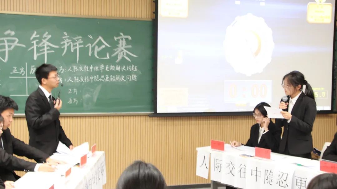 比赛进行中,双方辩手慷慨激昂,妙语连珠,针对对方的观点进行反驳和补充,引经据典,旁征博引,将辩论赛的魅力展现得淋漓尽致。