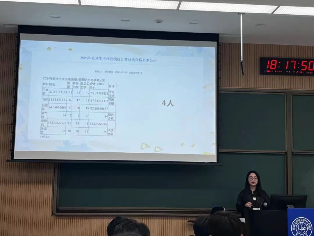 首先,张海芸学姐根据自身经历,分享了自己在直博过程中的学习经验。她由绩点计算规则和素质类加分政策入手,从如何分配时间、怎样调节身心健康等几个方面提出了建议,以便于同学们能够事半功倍的达成自己的目标。