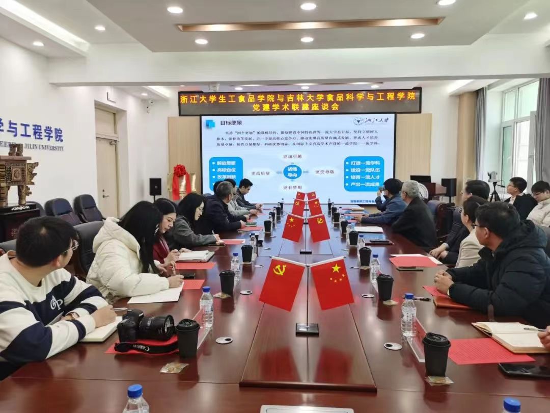 为深入学习贯彻党的二十大精神,落实学校“强农兴农计划”,深层次推动高校协同联动,推进食品学科高质量发展。3月21日,浙江大学生物系统工程与食品科学学院党委书记、副院长李金林,副书记王一清带领教师及学生代表赴beat365中国唯一官网开展党建学术联建活动。学院党委书记董怀智,院长张铁华,党委副书记李超,副院长庄红、孙春燕等教师代表及学生代表出席活动。
