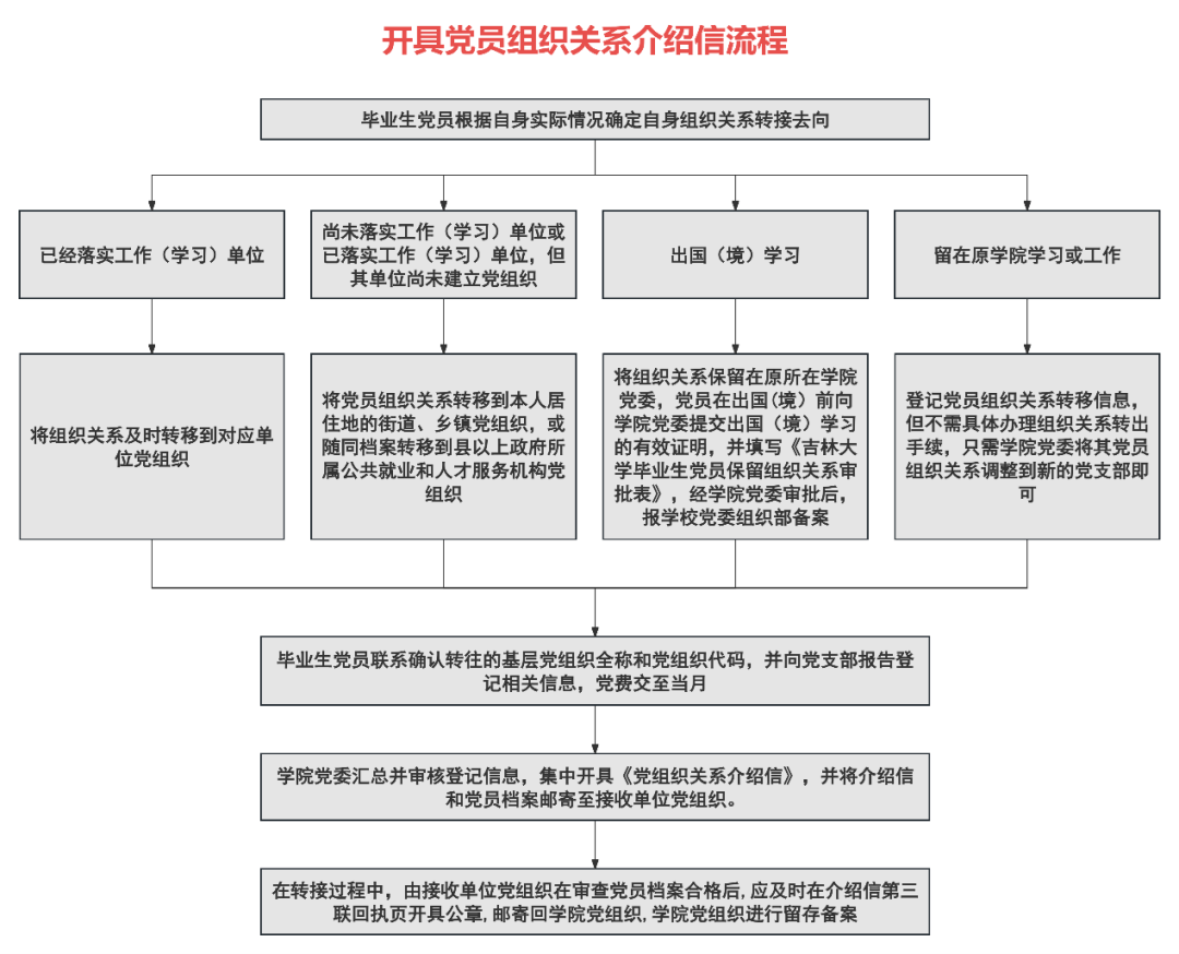 4. 留在原学院学习或工作的,需登记党员组织关系转移信息,但不需具体办理组织关系转出手续,只需学院党委将其党员组织关系调整到新的党支部即可。