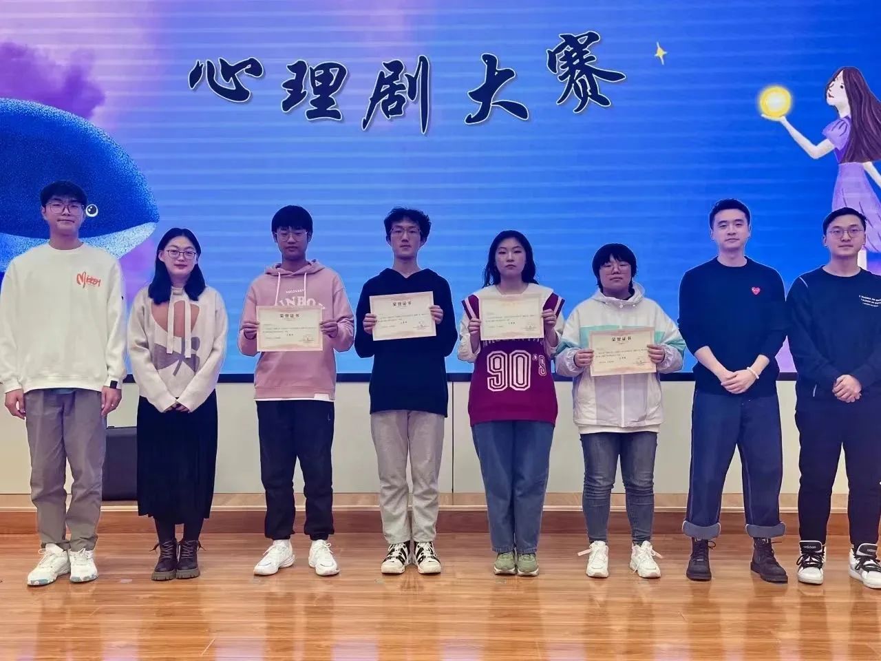 经过一个月的打磨与推敲,八支队伍在舞台上大放光彩。用心的情节构思,精妙的舞台设计,都为我们带来了一场视觉盛宴。心理剧大赛不仅使观众和演员亲身体验到心理情绪对自身行为发展的重要作用,同时也增强了大家对于心理健康知识的了解,提高心理素质,丰富课余生活。
