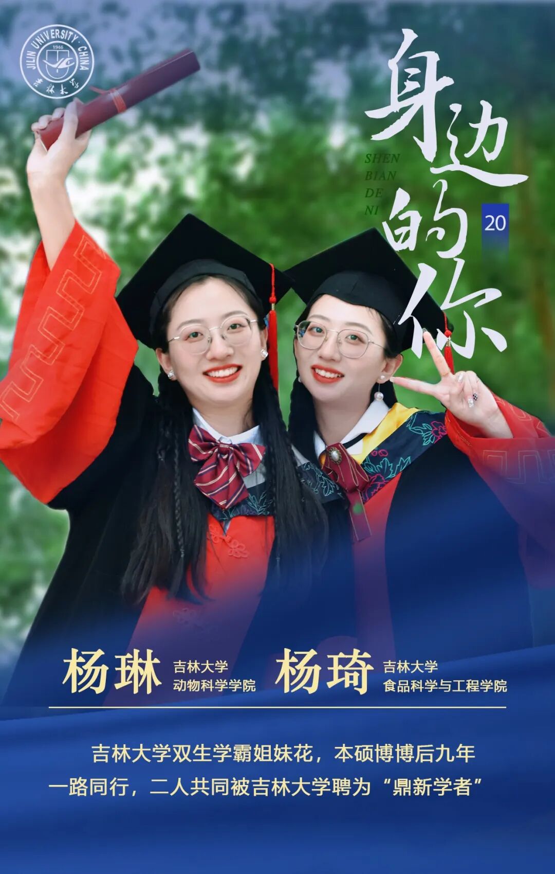 长期的共同生活并没有给姐妹两人带来矛盾,也鲜有竞争之类的关系,更多是在合作中相互进步。成长在白山黑水这片肥沃的土地上,杨琦、杨琳姐妹将根系深深扎入知识土壤。中考时,她们一同考进了县里的重点高中——通榆一中。2015 年,带着通榆黑土地赋予的坚韧,姐妹俩一同踏入吉林大学的校门,开启了本硕博的九年求学生涯,以近乎镜像的学术轨迹扎根生长。