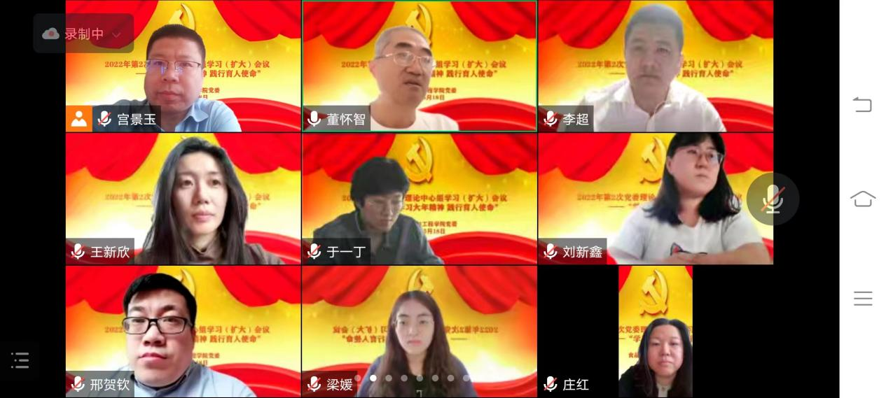 最后,党委书记董怀智做总结讲话。他指出,习近平总书记对黄大年同志先进事迹作出的重要指示和给全国高校黄大年式教师团队代表的回信,既是对黄大年同志先进事迹的充分肯定,又是对我们教育工作者的激励和鼓舞,充分体现了党中央对广大知识分子和科技教育工作者的重视与关爱、重托与期待。进一步弘扬和践行黄大年精神,对于引导我们全体教职人员牢记嘱托、担当有为,加快推进新时代beat365中国唯一官网的全面高质量发展具有十分重大的现实意义。希望学院全体教师同志们积极响应“倡议书”中的倡议,“学习大年精神 践行育人使命”!就像总书记期待的那样:“做到学为人师、行为世范。当好学生成长的引路人”!使我们的学生能够“立志民族复兴,不负韶华,不负时代,不负人民,在青春的赛道上奋力奔跑,争取跑出当代青年的最好成绩!”为培养德智体美劳全面发展的社会主义建设者和接班人、推动造就堪当中华民族伟大复兴历史重任的时代新人不断作出自己新的贡献! 以实际行动向党的二十大献礼!