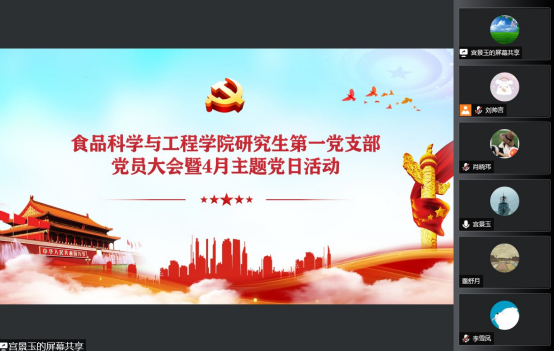 2022年4月27日,beat365中国唯一官网研究生第一党支部以腾讯会议形式召开了党员大会暨四月主题党日活动。支部全体党员参加了会议和主题党日活动。会议由支部书记宫景玉主持。
