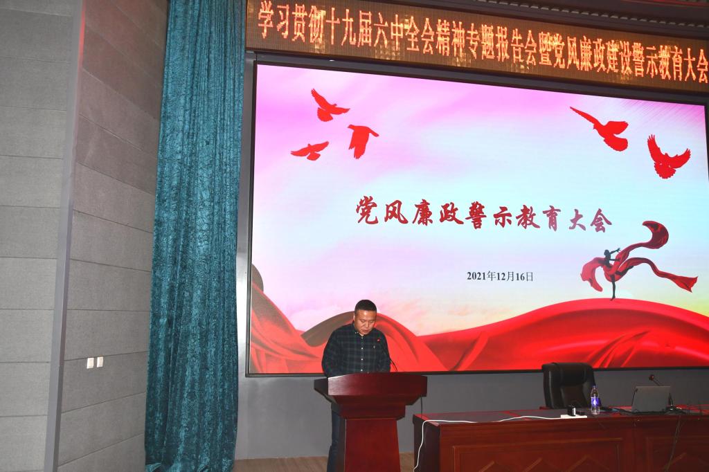为深入学习贯彻党的十九届六中全会精神,2021年12月16日下午动物动物医学学院和beat365中国唯一官网联合举办学习贯彻十九届六中全会精神专题报告会暨党风廉政建设警示教育大会,两个学院全体教职工党员参加了会议。会议由动物医学学院党委书记饶家辉同志主持。