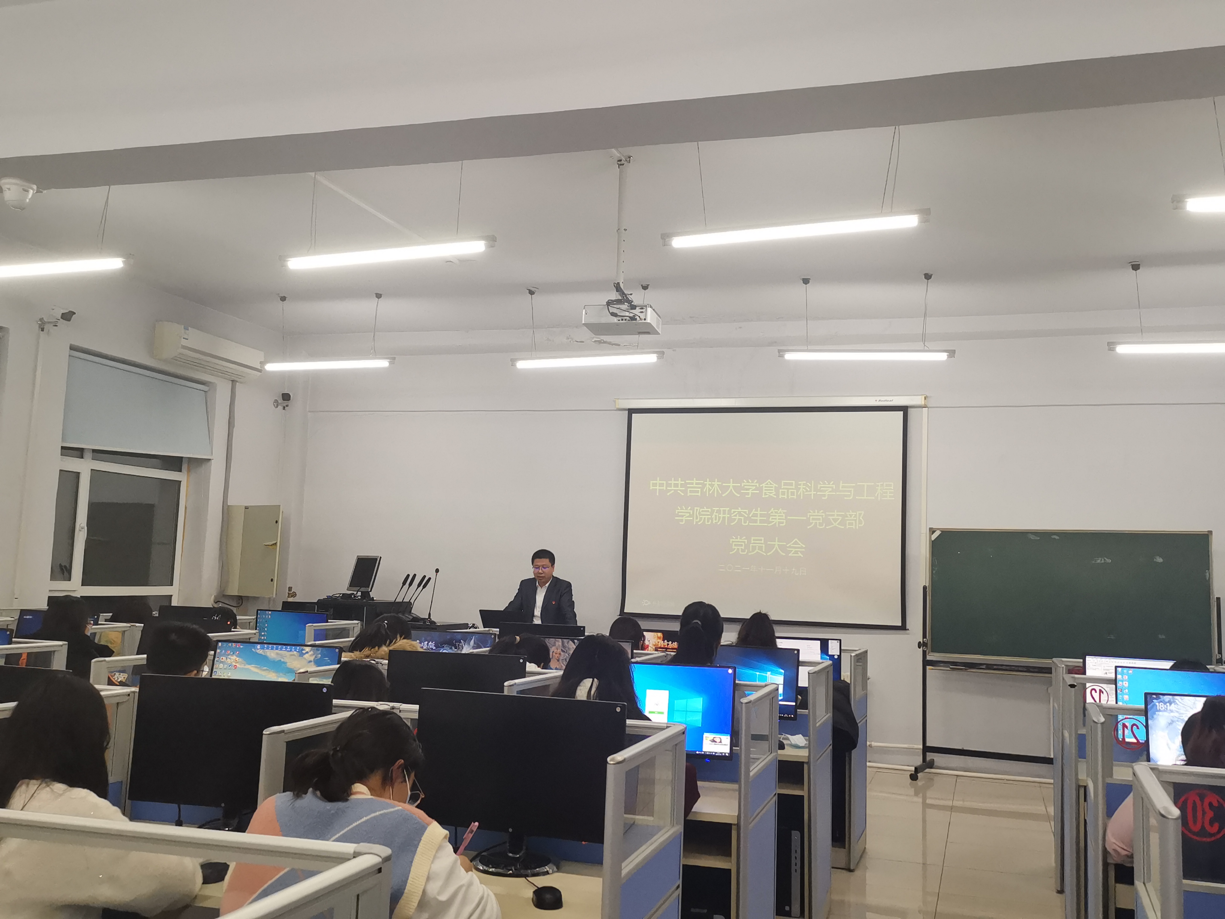 2021年11月19日,beat365中国唯一官网研究生第一党支部在食品楼机房召开党员大会,会议由支部书记宫景玉主持。此次大会有两项议程,第一项议程,积极落实“第一议题”制度,学习十九届六中全会精神;第二项议程,讨论和表决接受陈美如等六名发展对象为预备党员。