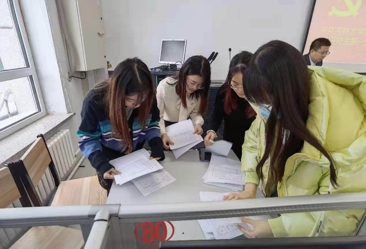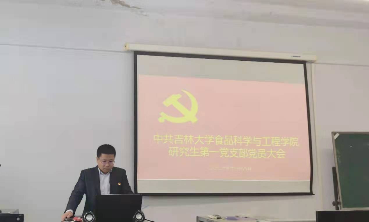 2021年11月8日中午12:00,beat365中国唯一官网研究生第一党支部在食品楼机房召开党员大会,会议由支部书记宫景玉主持。此次大会有三项议程,第一项议程,积极落实“第一议题”制度,学习“习近平总书记关于广大青年要爱国爱民、从党史学习中激发信仰、获得启发、汲取力量”的重要论述;第二项议程,讨论和表决赵茹等七名预备党员转正问题;第三项议程,重温入党誓词,用铮铮誓言彰显永恒初心。