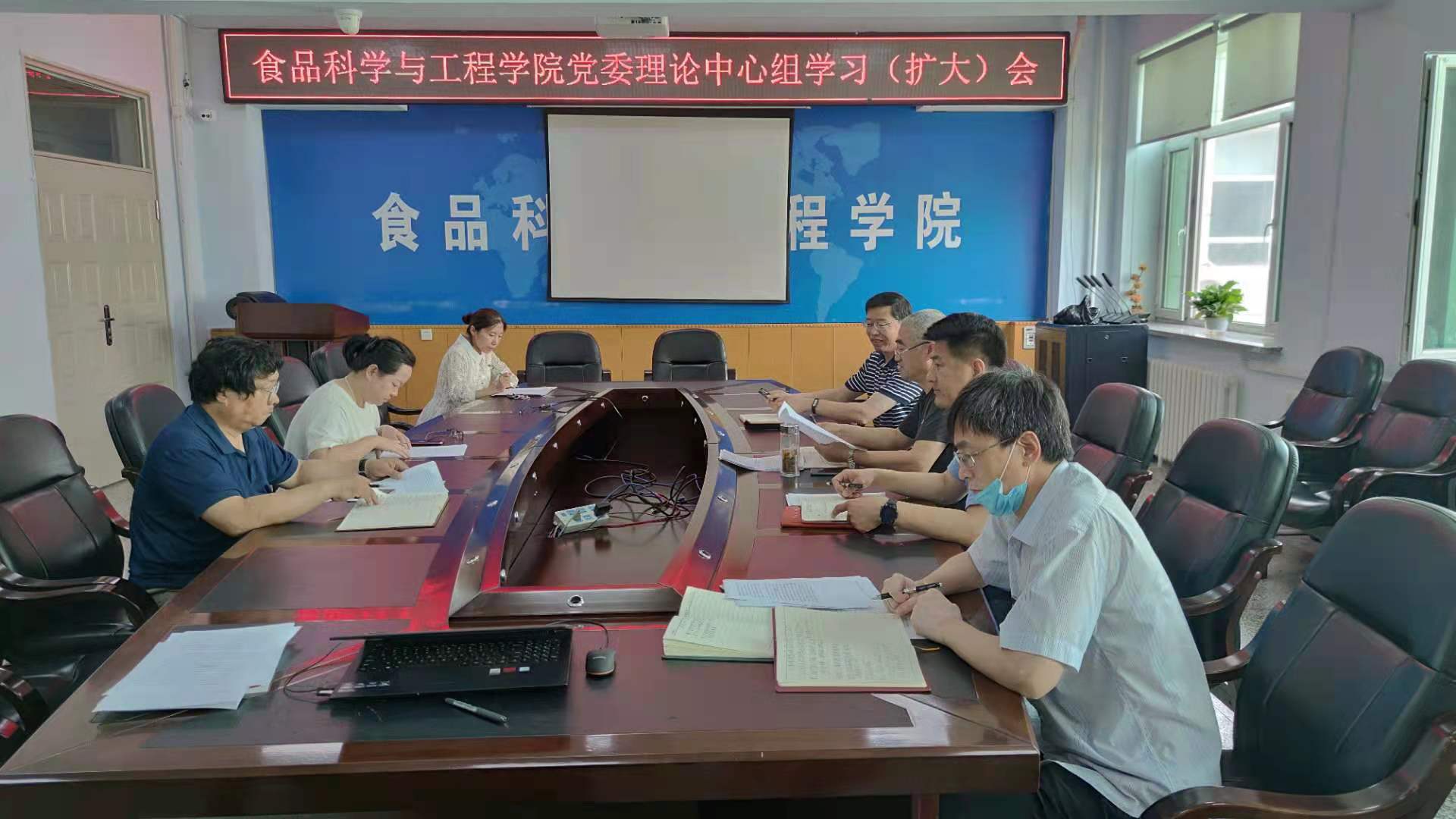 2021年7月6日上午,beat365中国唯一官网在食品楼三楼会议室召开党委理论中心组学习(扩大)会议。围绕习近平总书记在庆祝中国共产党成立100周年大会上的重要讲话精神开展专题学习交流。学院党委委员、领导班子成员参加了会议。会议由学院党委书记董怀智主持。