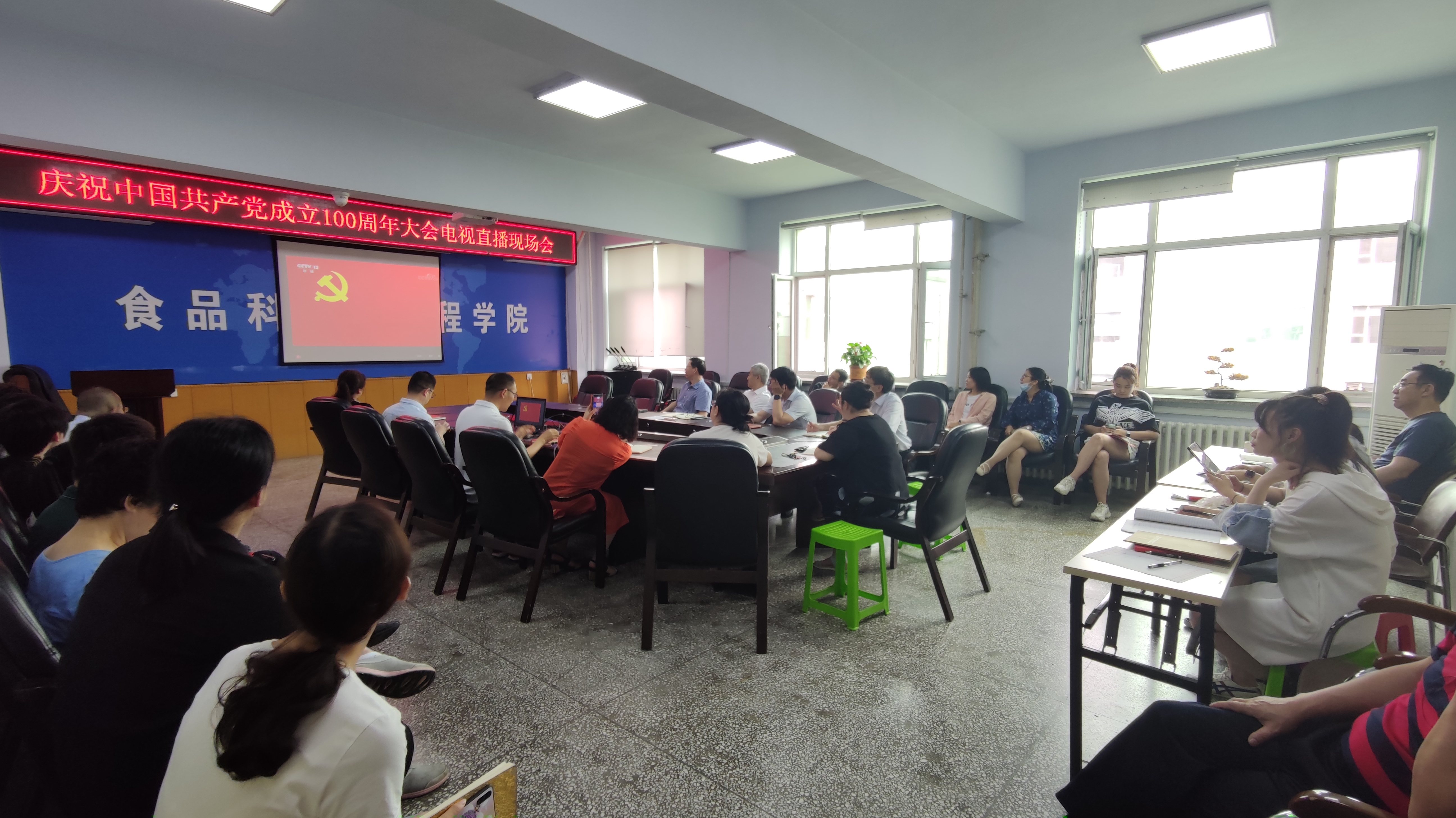 2021年7月1日8时,beat365中国唯一官网组织学院教工党员在食品楼三楼会议室集中观看庆祝中国共产党成立100周年大会直播。学院领导班子成员、党委委员、党支部书记、全体管理干部、全体教职工党员参加了此次会议。会议由学院党委书记董怀智主持。