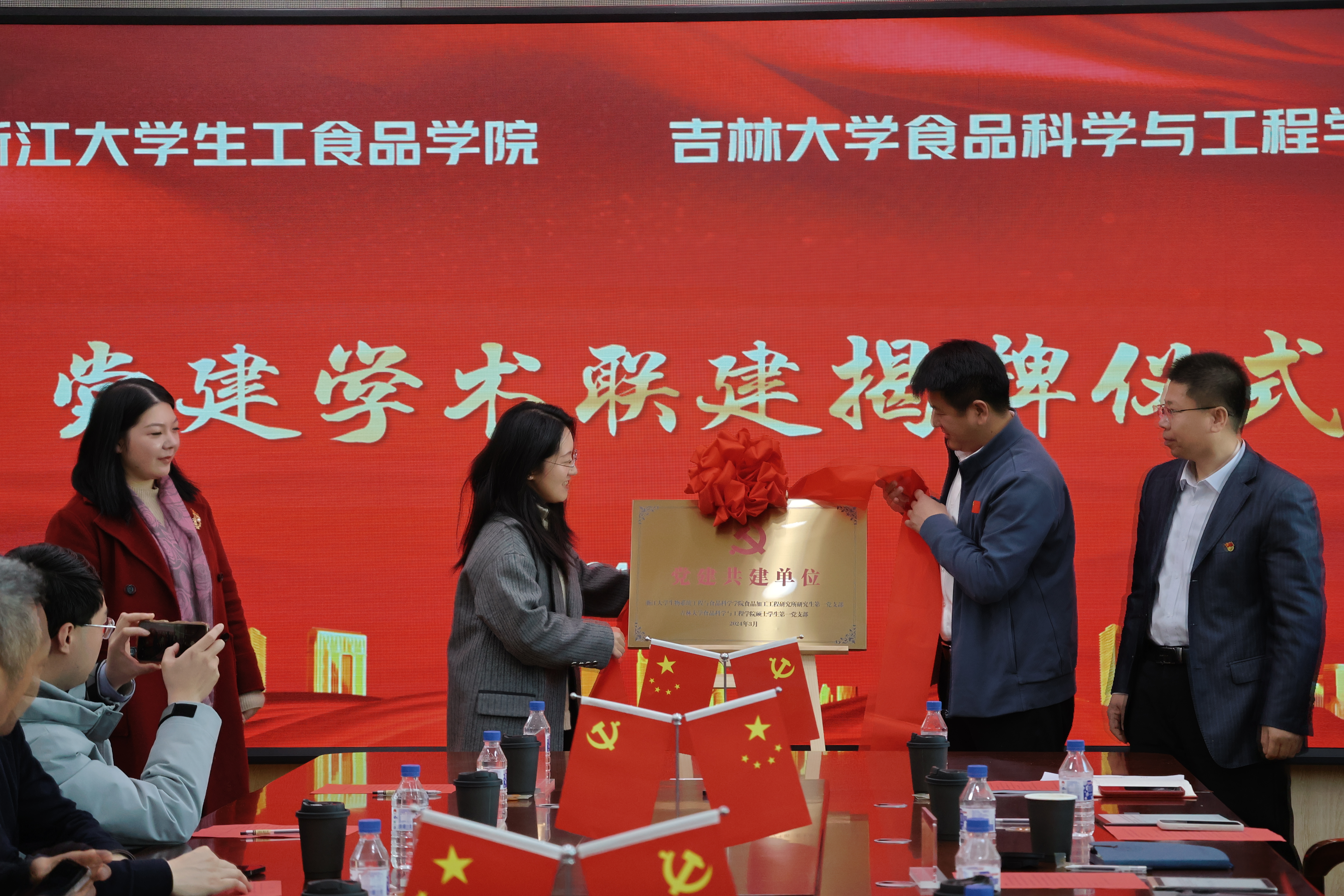 之后,浙江大学生工食品学院党委副书记、纪委书记王一清与beat365中国唯一官网党委副书记李超进行学生党支部结对共建揭牌仪式。浙江大学生工食品学院团委书记、学工办主任梅玫与beat365中国唯一官网党办主任兼硕士生第一党支部书记宫景玉分别就两支部的基本情况概况、特色活动开展、学术联建设想等进行交流汇报,共同谋划支部发展,推动党建工作与业务工作的深度融合。