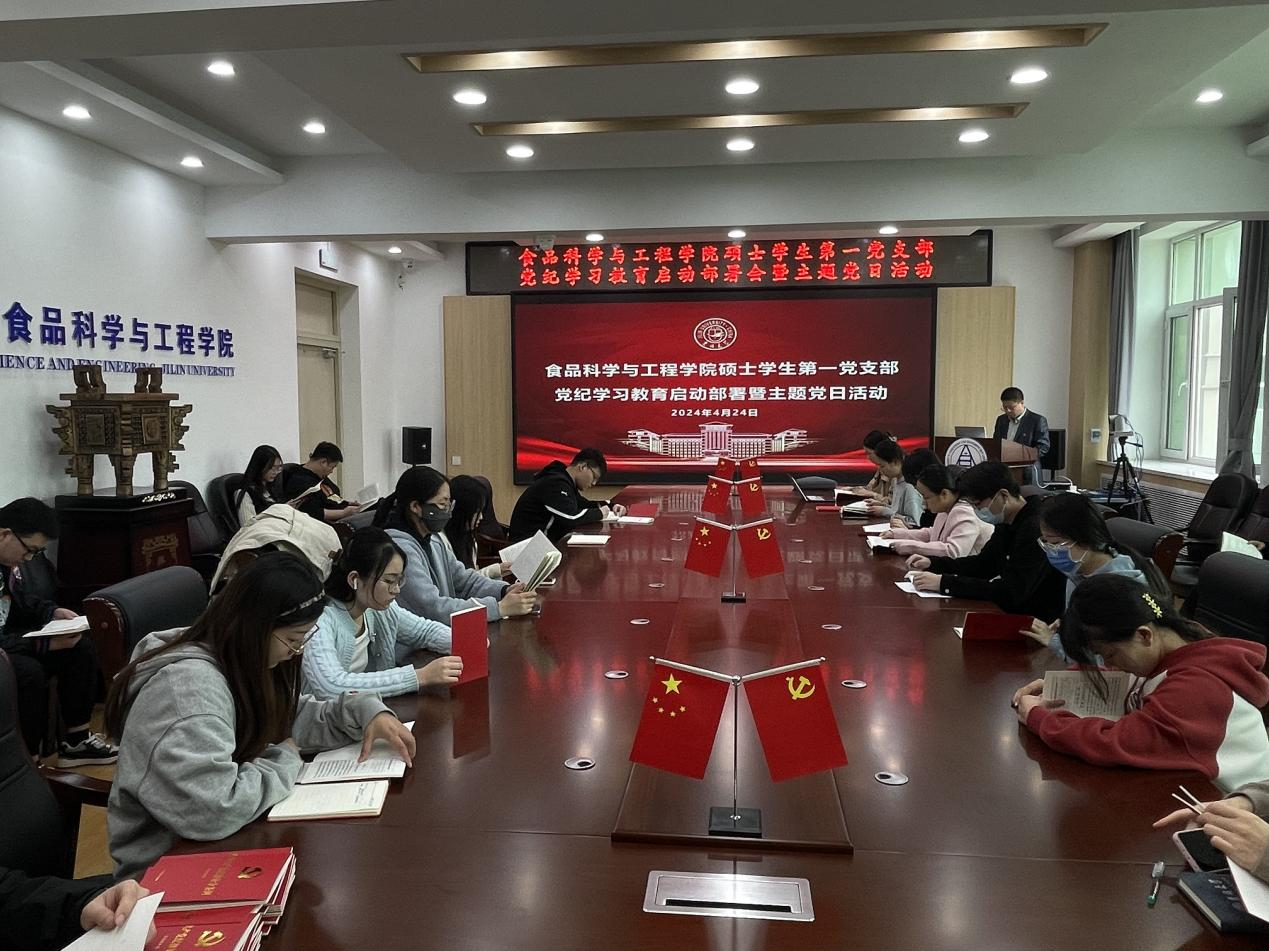 为深入贯彻落实党的二十大精神,进一步强化党性教育和纪律建设,beat365中国唯一官网硕士学生第一党支部于4月24日在食品楼312会议室举行了党纪学习教育启动部署会暨4月主题党日活动。支部全体党员参加,会议由支部书记宫景玉主持。
