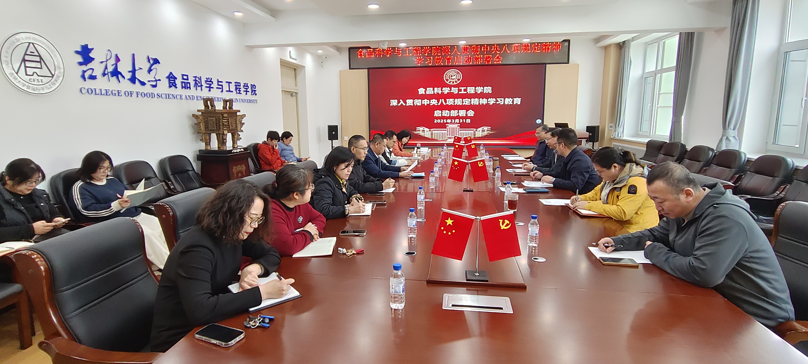 会上,梅士伟带领与会人员共同学习了《十八届中央政治局关于改进工作作风、密切联系群众的八项规定》。院长张铁华传达了吉林大学深入贯彻中央八项规定精神学习教育启动部署会会议精神,对《beat365中国唯一官网深入贯彻中央八项规定精神学习教育实施方案》进行了重点解读。副院长叶海青传达了吉林大学2025年全面从严治党工作会议暨警示教育大会会议精神。
