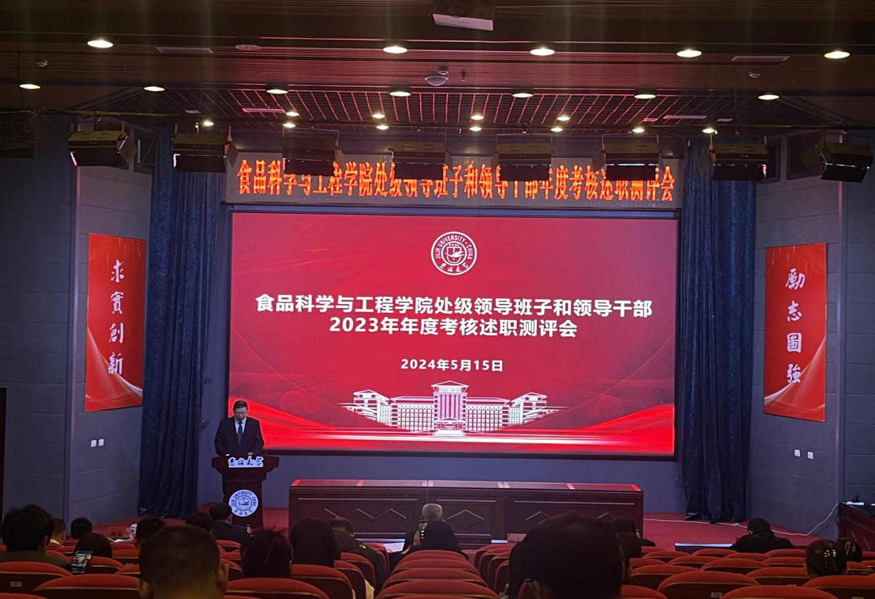 会议开始,由院长张铁华代表学院领导班子作总结报告,围绕政治思想建设、领导能力建设、工作实绩、党风廉政建设、作风建设等方面总结了主要业绩和成效,并指出工作中存在的问题及下一步工作努力方向。学院党委将全面贯彻落实党中央和上级党委各项决策部署,坚持以习近平新时代中国特色社会主义思想为指导,认真学习贯彻党的二十大精神和学校第十五次党代会精神,不断加强党对学院工作的全面领导,始终坚持为党育人、为国育才的初心使命,落实立德树人根本任务,不断推进学院的高质量发展,为学校的“双一流”建设贡献食品力量。