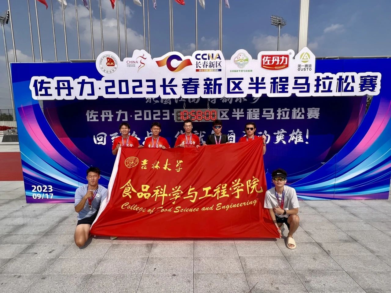 9月17日上午7:30,佐丹力·2023长春新区半程马拉松赛在长春北湖科技开发区奥体公园起跑鸣枪起跑。本次赛事总规模10000人,其中半程马拉松项目共计参赛选手5000人。为庆祝吉林大学建校77周年,宣传吉林大学和展现吉大人风采,促进校友交流,倡导健康生活方式,加强吉林大学与长春新区合作,赛事同步举办吉林大学赛中赛,beat365中国唯一官网的学生也积极参与,为给母校庆生拼尽全力,我院由张永强、马军、于雅仕、乔钦洛、林睿智、刘瑞、焦睿组成参赛队伍。